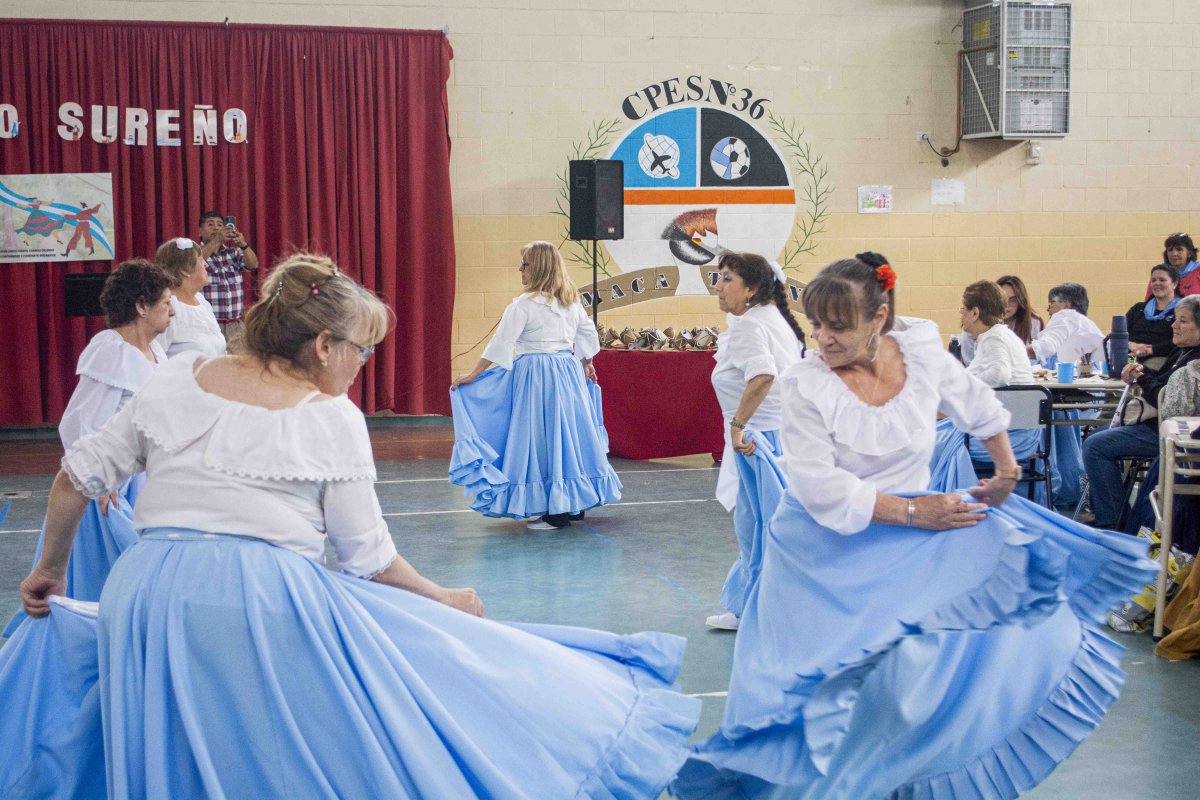 Este jueves, adultos mayores del Centro de Día “Recuerdos Compartidos” participaron activamente de la Peña “Viento Sureño”, desarrollada en las instalaciones del Colegio Secundario N° 36 de Río Gallegos.