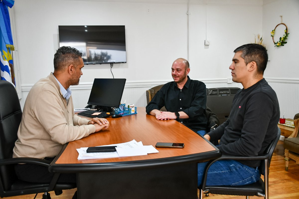 Por la tarde, Georgion recibió al intendente de Caleta Olivia, Pablo Carrizo, acompañado por el secretario de Hacienda Franco Antipani, con quienes avanzaron en propuestas orientadas a fortalecer el trabajo territorial conjunto en materia de acompañamiento a las familias, deporte y economía social, entre otros ejes.