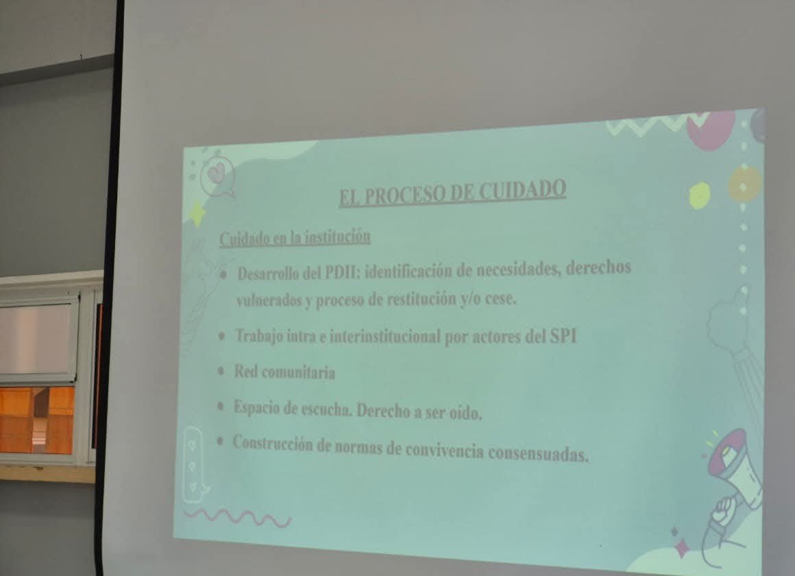 La jornada formativa estuvo a cargo de la licenciada en Trabajo Social Merlina Saldivia, quien brindó herramientas teóricas y prácticas orientadas al abordaje cotidiano, en el marco del sistema de protección integral de derechos.