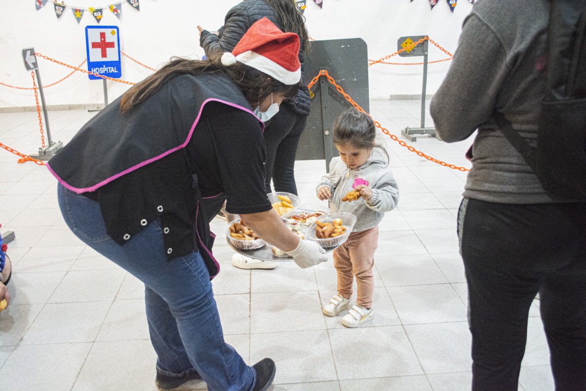 Durante la tarde, niñas y niños disfrutaron de diversas actividades pensadas para toda la familia, entre las que se destacaron la visita de Papá Noel —con quien pudieron sacarse fotografías y entregar sus cartas—, la decoración de galletitas navideñas, juegos didácticos, un circuito vial infantil a cargo de Vialidad Provincial, corte de cabello gratuito, castillo inflable, música a cargo de DJ, entrega de regalos, merienda compartida, gelatina y torta.