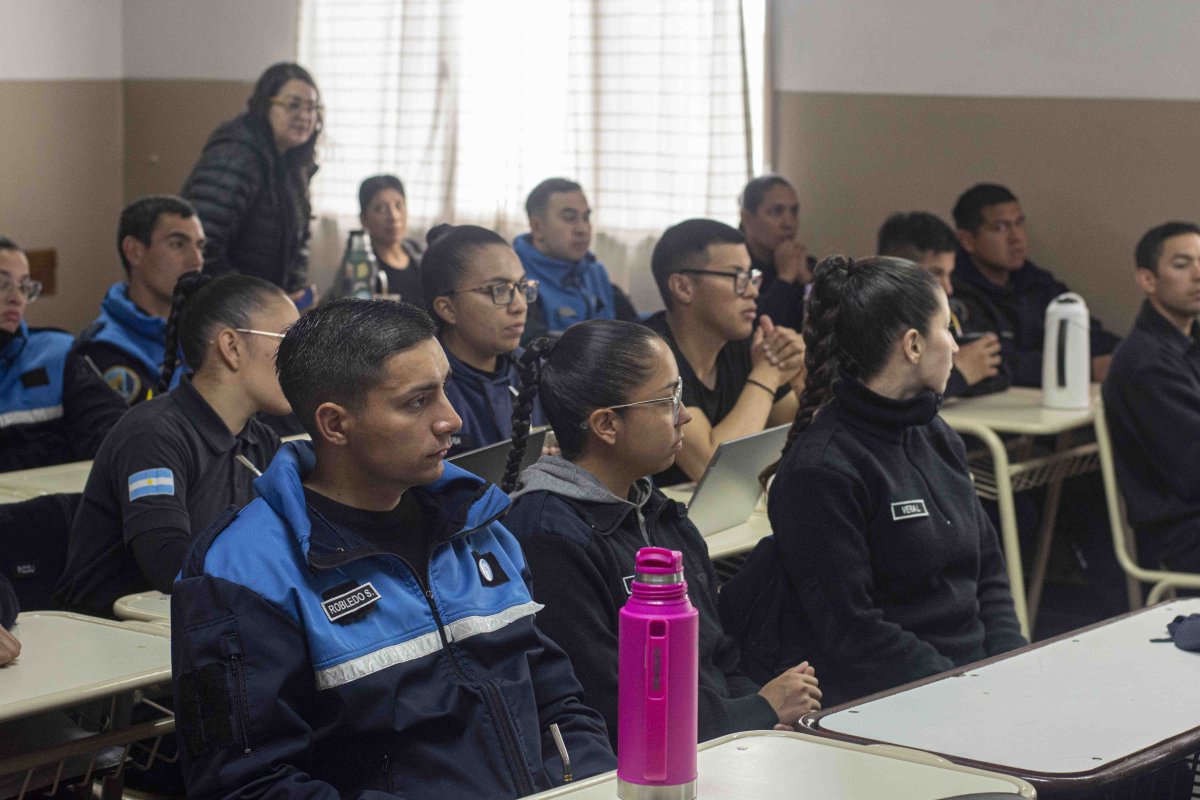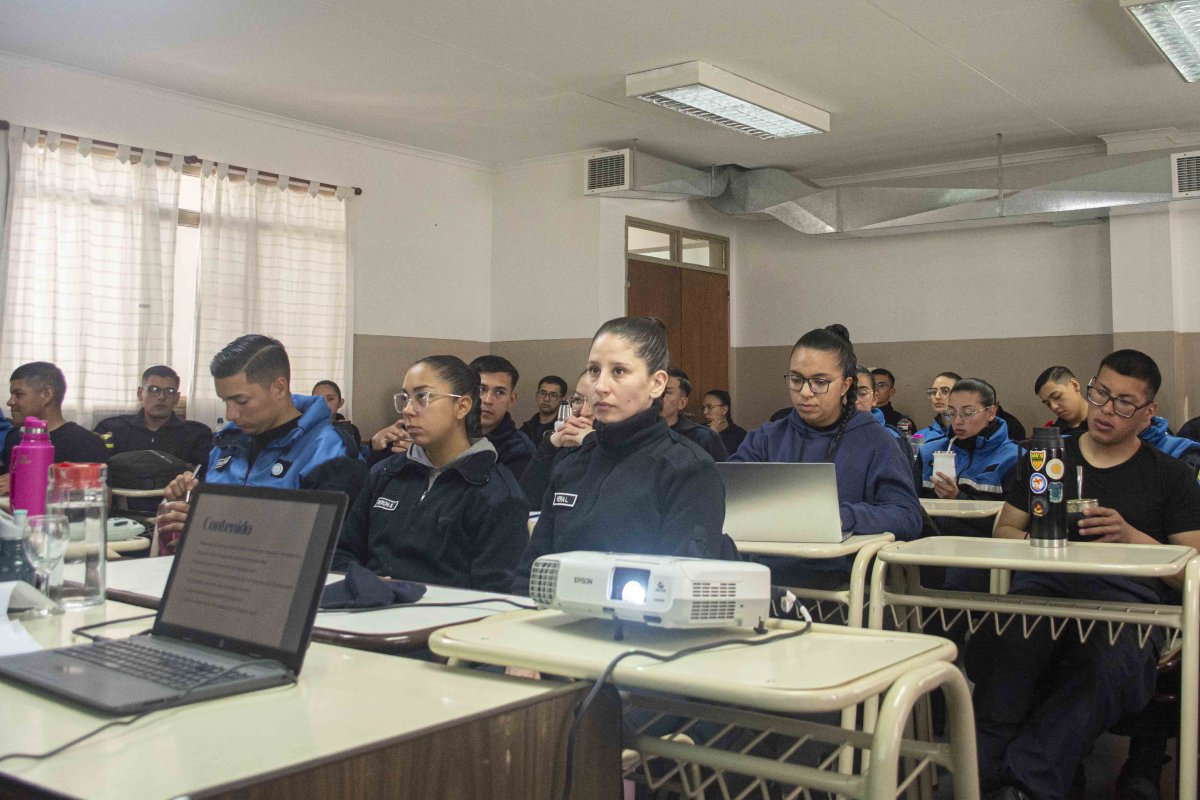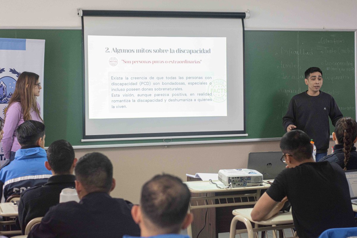 La jornada estuvo a cargo de la Licenciada María López y el Técnico Leandro Vera, integrantes del equipo técnico de la Subsecretaría de Políticas para Personas con Discapacidad, y contó con el acompañamiento del director de la Escuela de Suboficiales y Agentes, Comisario Mayor Rodrigo Galindo; el subdirector, Comisario Inspector Pablo Molina; y el Técnico en Pedagogía y Educación Social, Maximiliano Soulez.