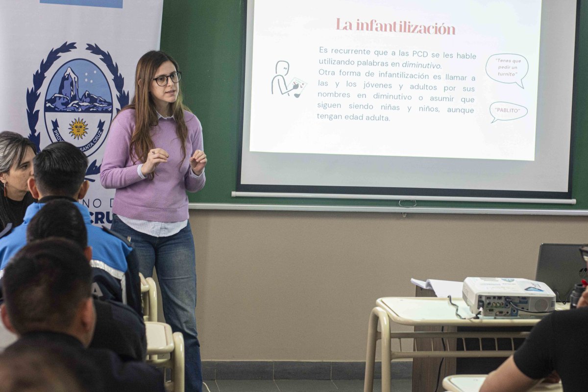 En la sede de la Escuela de Formación de Agentes y Suboficiales "Comisario Mayor Ricardo A. Vallejos" de la Policía de Santa Cruz, se llevó adelante este viernes la capacitación “Derechos, discapacidad y buenas prácticas policiales”, una propuesta impulsada por la Subsecretaría de Políticas para Personas con Discapacidad del Ministerio de Desarrollo Social, Igualdad e Integración.