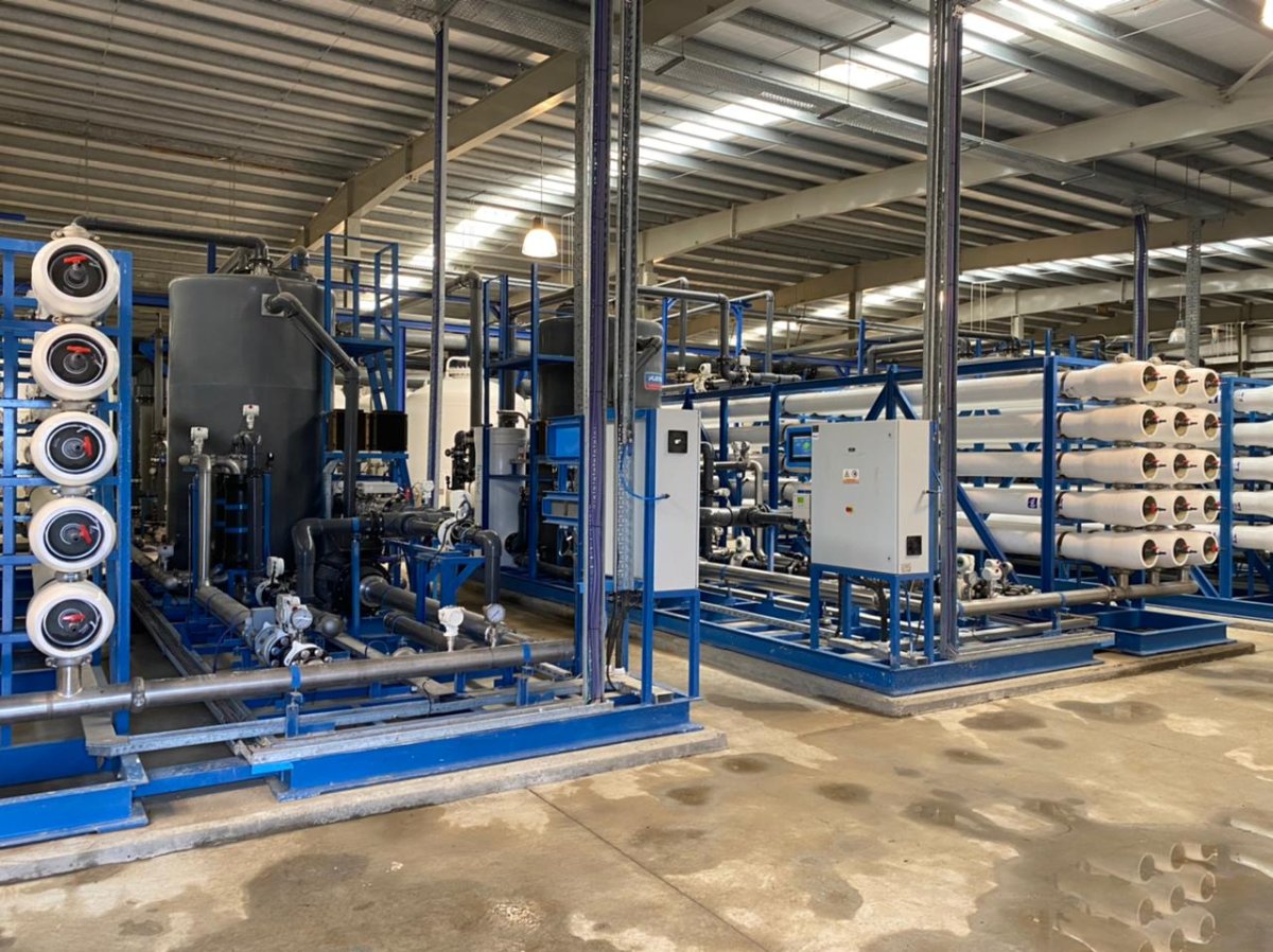 Posteriormente, junto al presidente de IDUV, Daniel Copertari, las autoridades recorrieron la Planta de Osmosis Inversa de Caleta Olivia que se encuentra en etapa de prueba.