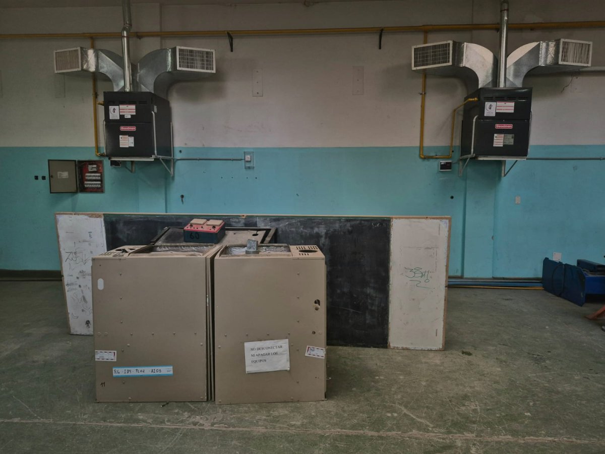 Durante la visita, se supervisaron los avances en los trabajos de mantenimiento que forman parte del Plan de Reparación Histórica de las Escuelas, impulsado por el gobierno de Santa Cruz. Las tareas incluyeron la colocación de cinco nuevos equipos de calefacción de 34.500 kcal/h, tres para el área de los talleres y dos para el sector de las aulas.