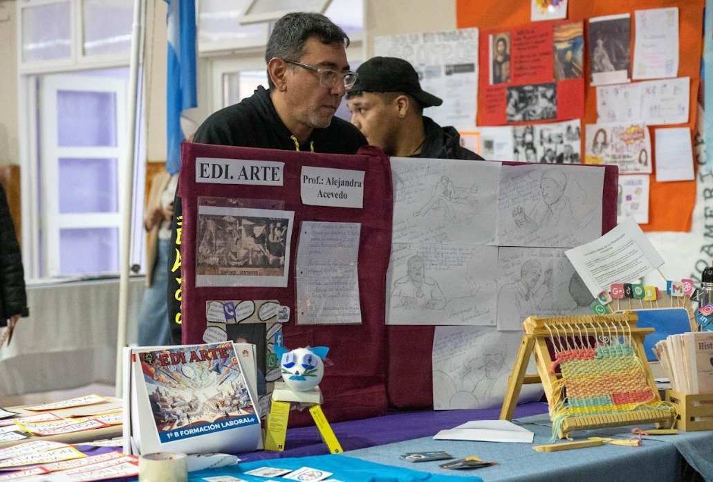En este marco, el director provincial de la modalidad, Oscar Romero, manifestó que la institución educativa funciona en dos espacios: la sede ubicada en la calle Jaramillo y el anexo del barrio San Benito. Durante el recorrido por los distintos stands, los estudiantes presentaron con entusiasmo los trabajos realizados, demostrando compromiso, creatividad y conocimiento.
