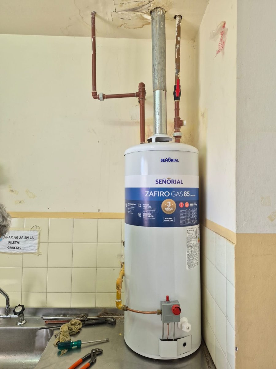 Asimismo, se realizaron tareas de mantenimiento y adecuación en instalaciones de gas y equipos de calefacción, con el objetivo de garantizar condiciones seguras de funcionamiento en los establecimientos escolares.