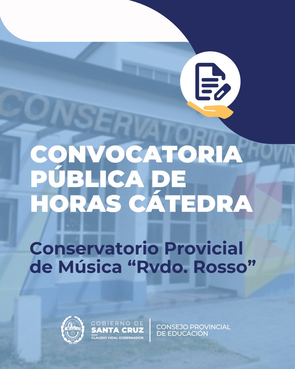 El Consejo Provincial de Educación, a través de la Dirección General de Educación Artística, informa que abre convocatoria pública para la cobertura de Horas Cátedra docente pertenecientes al PLAN NIÑOS del Conservatorio Provincial de Música “Rvdo. Eugenio Rosso”, de Río Gallegos.