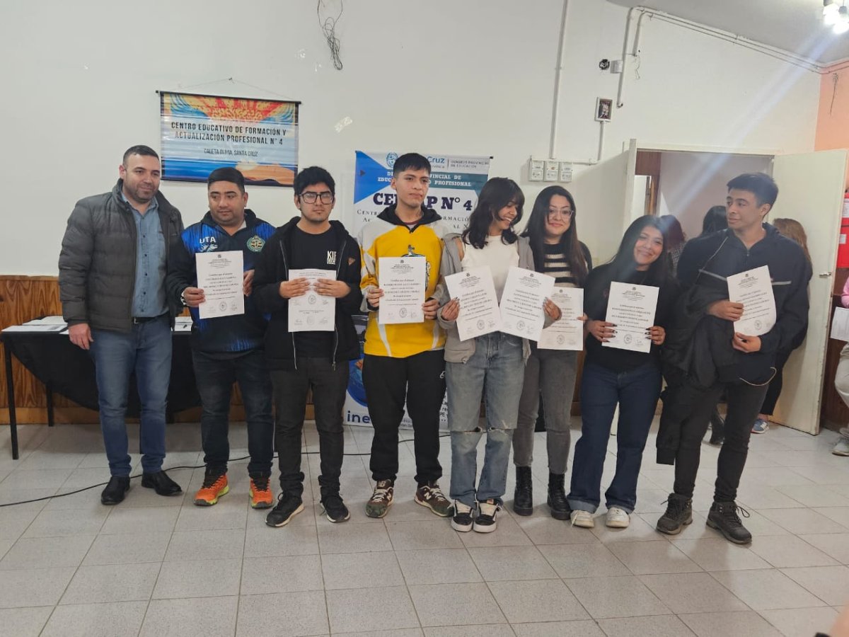 El Gobierno de Santa Cruz, a través del Consejo Provincial de Educación, llevó a adelante un acto con motivo de hacer entrega certificaciones a estudiantes de Nivel Secundaria y personas, que culminaron las distintas formaciones brindadas por el Centro Educativo de Formación y Actualización Profesional N°4 y el CEFyAP N°11 Aula Talleres Móviles, de Caleta Olivia.
