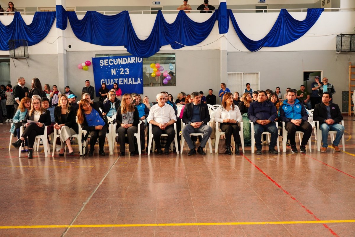 Por su parte, la rectora de la institución educativa, Melisa Scott agradeció a todos los presentes y señaló que hace cuatro años que el gimnasio se encontraba abandonado. “En un principio fue por la pandemia que nos obligó a cerrar nuestras puertas y trabajar desde la virtualidad, pero luego en la presencialidad lamentablemente nuestro gimnasio no soportó las condiciones en las que se encontraba y desde allí que no podemos aprovechar este espacio”, comentó.