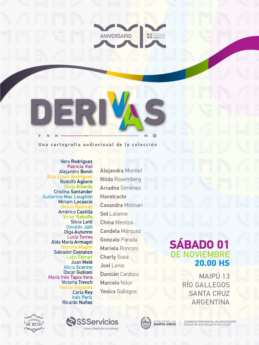 El Museo de Arte Eduardo Minnicelli, dependiente del Consejo Provincial de Educación de Santa Cruz, celebra sus 29 años con la inauguración de la muestra aniversario “Derivas. Una cartografía audiovisual de la colección”, que abrirá sus puertas este sábado 1° de noviembre a las 20:00 horas en las salas del museo.