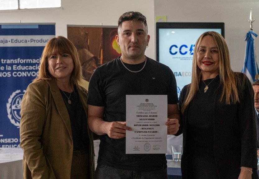 Asimismo, destacó la alianza estratégica entre el Estado provincial, el CPE, CAMICRUZ, empresas como Cookins y MV Seguridad, operadoras mineras y organizaciones sindicales, subrayando que este trabajo conjunto permitió llevar adelante la primera edición de este ciclo formativo.