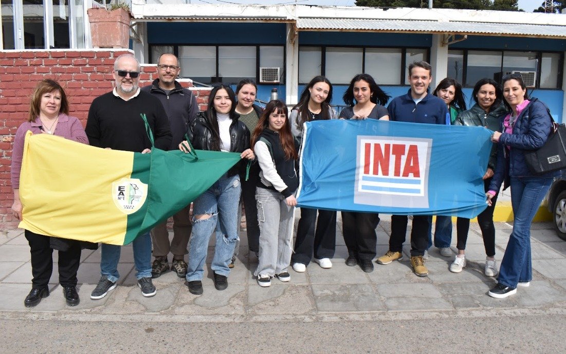 Acompañadas por la directora provincial de Educación Técnico Profesional, Sandra Ortiz; la directora general de Educación Superior Técnica, Romina Santarelli; la directora regional Zona Centro, María Pía Morini; el agente normalizador Ing. Agr. Germán Seeber y la docente Ing. Agr. Daniela Suque, la delegación visitó la Estación Experimental Agropecuaria INTA Chubut, donde dialogaron sobre drones de uso agropecuario, viñedos y elaboración de vinos, y ensayos de eficiencia en la alimentación de ovinos.