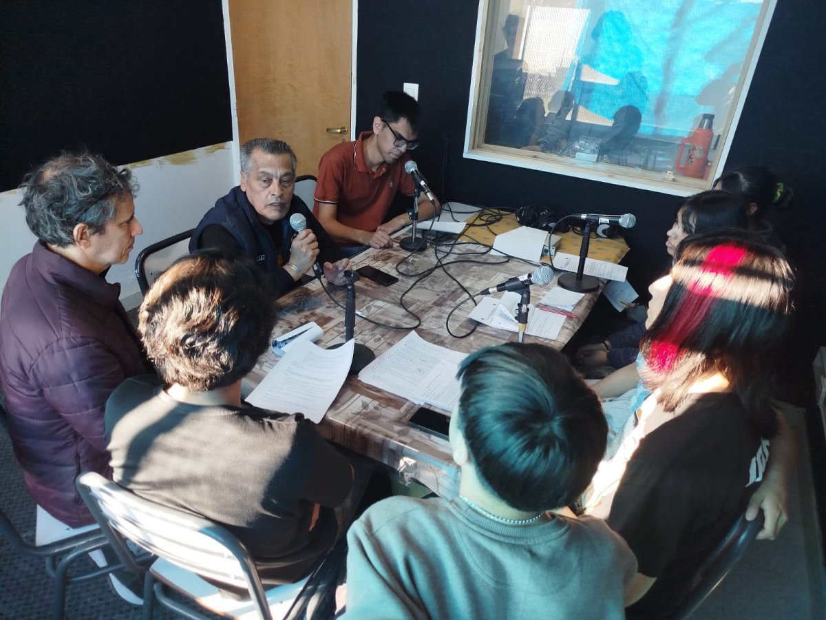 La propuesta contó con la participación de estudiantes de 5° año, acompañados por los docentes Hugo Ugarte y Darío González, junto al equipo del Programa Provincial de Radios Socioeducativas, dependiente de la Dirección Provincial de Educación Superior, que brindó asesoramiento técnico, operación y registro del material.