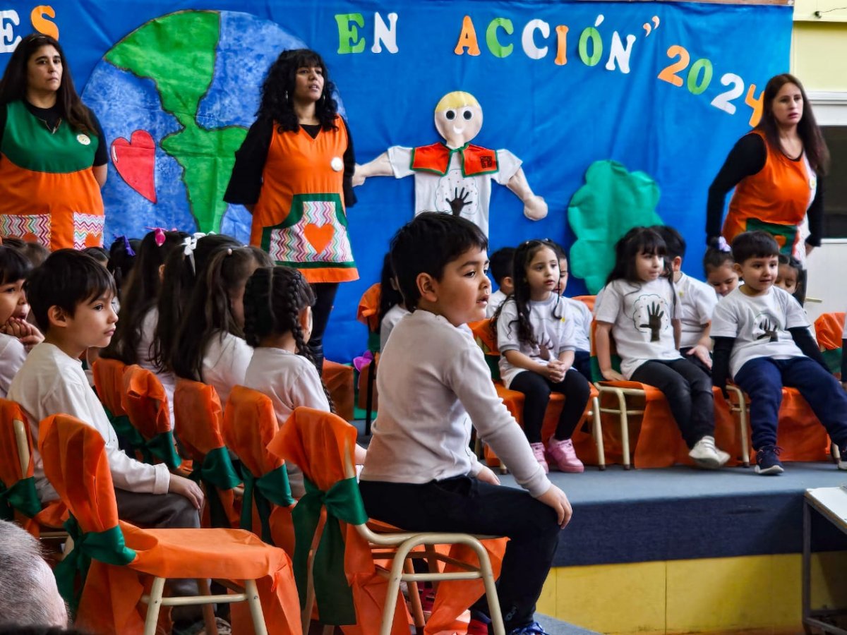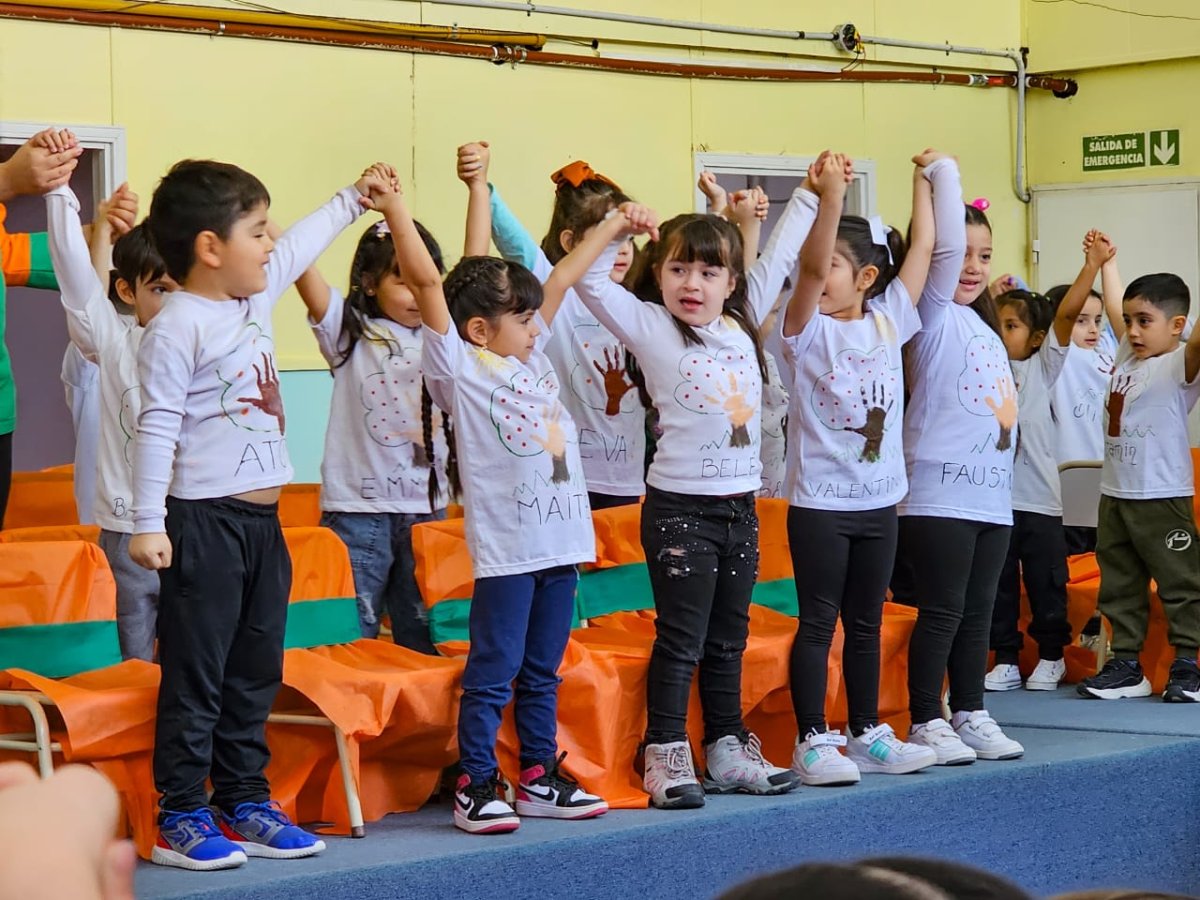 Como ocurre todos los años, el jardín volvió a vivir una fiesta de la Ecología, en la que no faltaron la Bandera, el Himno y las remeras del grupo, principales insignias del proyecto que le da identidad a esta institución educativa.