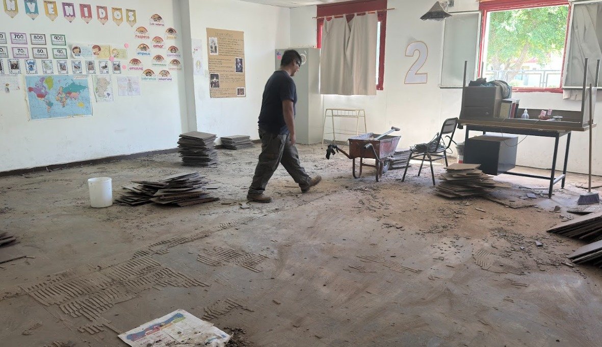 En el marco de la agenda institucional se recorrió la Escuela Provincial de Educación Primaria N° 72, donde se supervisaron las tareas de mantenimiento preventivo y correctivo que se llevan adelante a partir del convenio entre el CPE y el Municipio. En esta institución. se ejecuta el recambio de piso en cinco aulas, además de otras intervenciones que se desarrollan en distintos edificios educativos de la localidad.