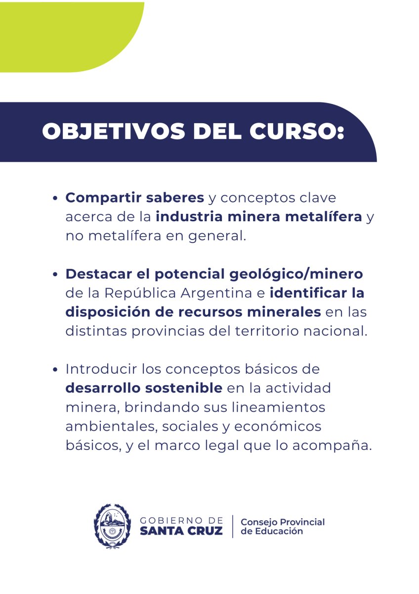 El Consejo Provincial de Educación informa que se encuentran abiertas las inscripciones para el curso virtual “De la Minería a la Vida Cotidiana”, destinado a docentes de todos los niveles educativos y modalidades.