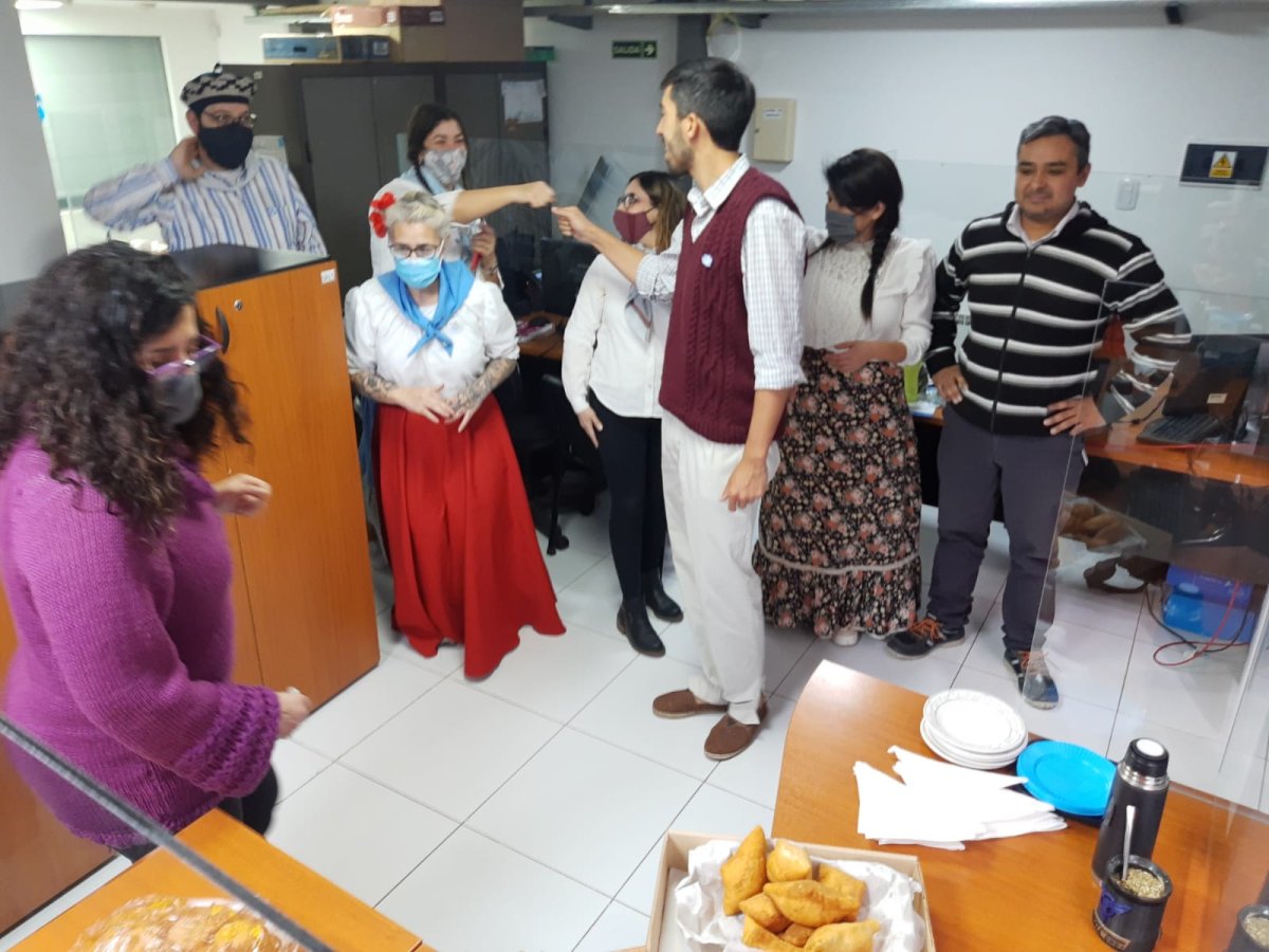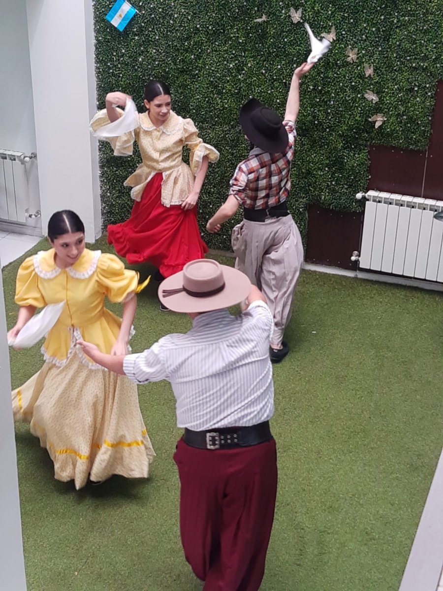 En horas de la mañana, se realizó el primero de los dos actos con los que el organismo provincial celebró el día de la declaración de la Independencia Nacional en su sede central de Río Gallegos, donde todo el equipo de trabajo compartió un desayuno patrio, acompañado por los integrantes de la Escuela de Danzas Folklóricas “Vientos de mi Sur” y su directora, Antonella Gerez, quienes representaron bailes tradicionales de nuestro país.
