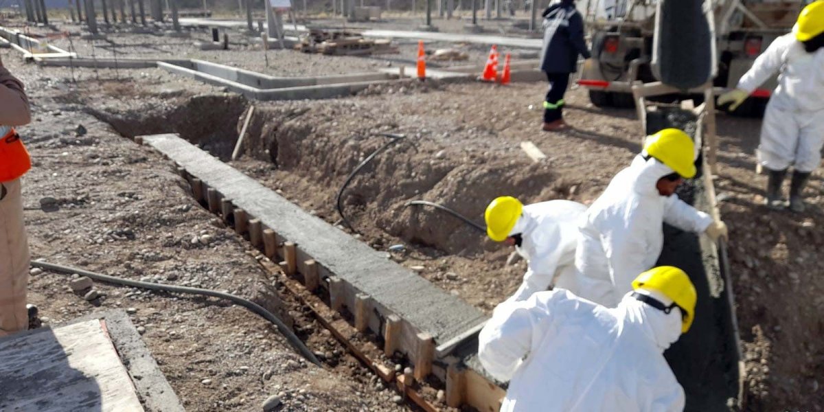 Sobre los trabajos en la Línea de Media Tensión de 33 Kv, se informó que se comenzó con el posicionamiento de encofrados y volcado de hormigón en la zona de la columna N°13.