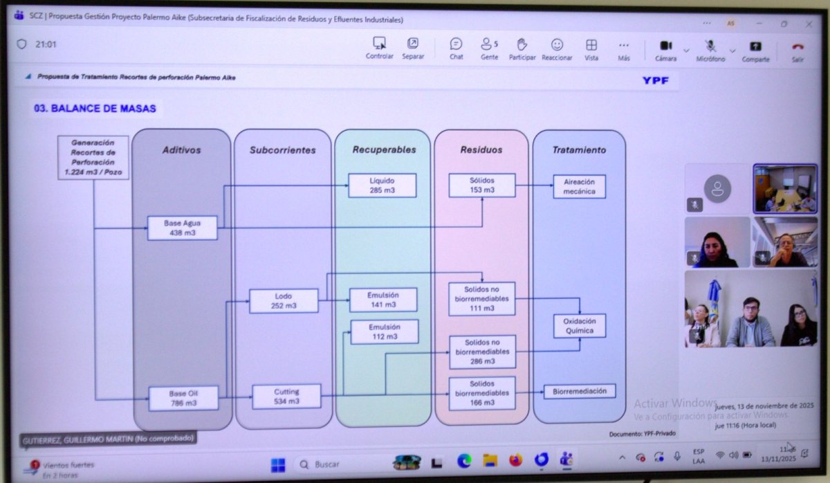 La Secretaría de Fiscalización y Control Ambiental Energético y Minero participó de una reunión técnica inicial con la empresa YPF S.A., en la que se presentaron los principales aspectos vinculados a la gestión de residuos peligrosos y lodos de perforación del proyecto exploratorio “Palermo Aike”.