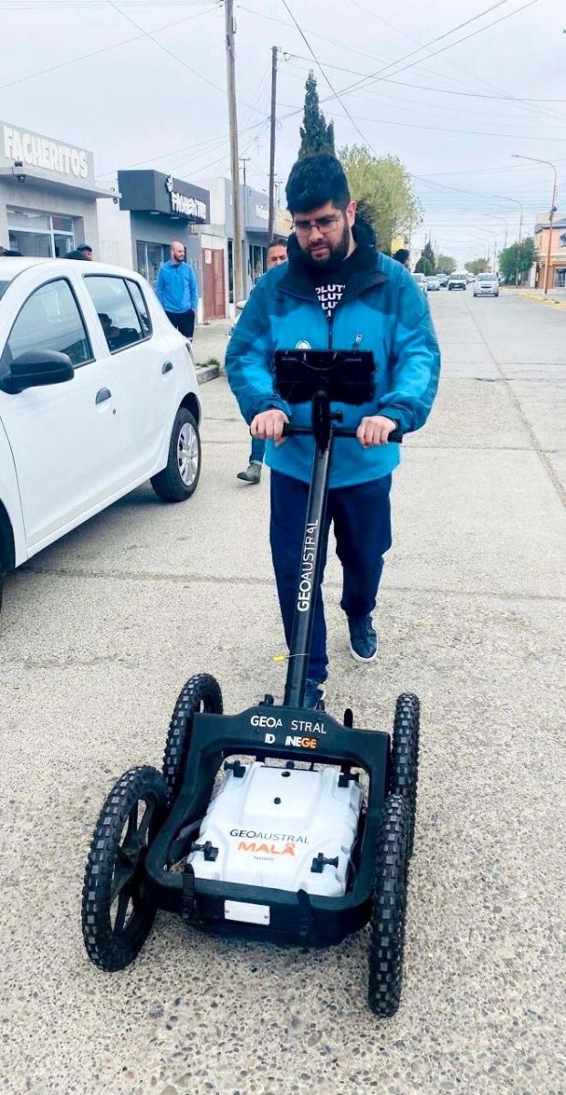 La segunda técnica, “Georradar”, utiliza una antena que emite ondas electromagnéticas cerca de la superficie, las cuales se reflejan en las distintas capas del subsuelo y generan imágenes en tiempo real. Este método resulta especialmente útil en entornos urbanos, permitiendo identificar cavidades o cañerías enterradas sin necesidad de realizar excavaciones o roturas.