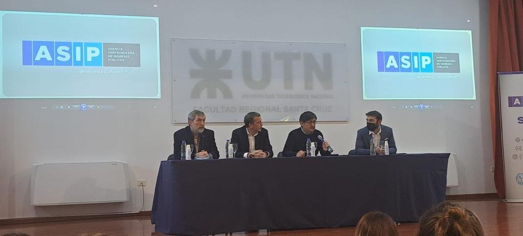 En el Aula Magna de la UTN – Facultad Regional Santa Cruz, se concretó la presentación que fue realizada por el director ejecutivo de la ASIP, Julio A. Becker; el ministro de Economía, Finanzas e Infraestructura, Ignacio Perincioli; y, el secretario de Hacienda, Bruno Ruggeri, acompañados de autoridades de la titular de la Agencia Río Gallegos de la AFIP, Regina Inojosa, la titular de Distrigas S.A., Belén García; la delegada de la Dirección Nacional de Migraciones, Karen Cader; el presidente de la Cámara de Comercio de Río Gallegos, Jonathan Van Thienen; y autoridades del Consejo Profesional de Ciencias Económicas y otros funcionarios de la Agencia.