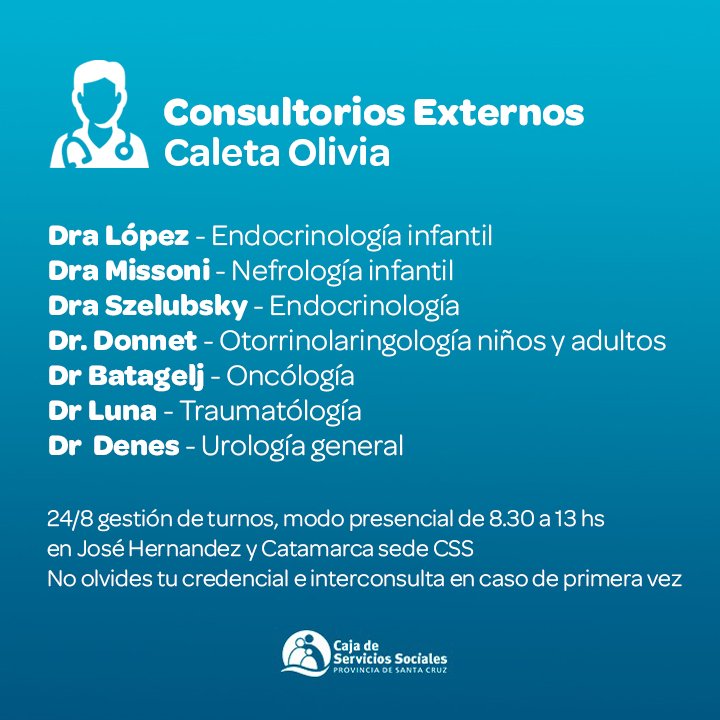 Afiliados y afiliadas de la Caja de Servicios Sociales podrán acceder a los servicios de salud a través de la obra social santacruceña. Los turnos se gestionarán a partir del próximo 24 de agosto.