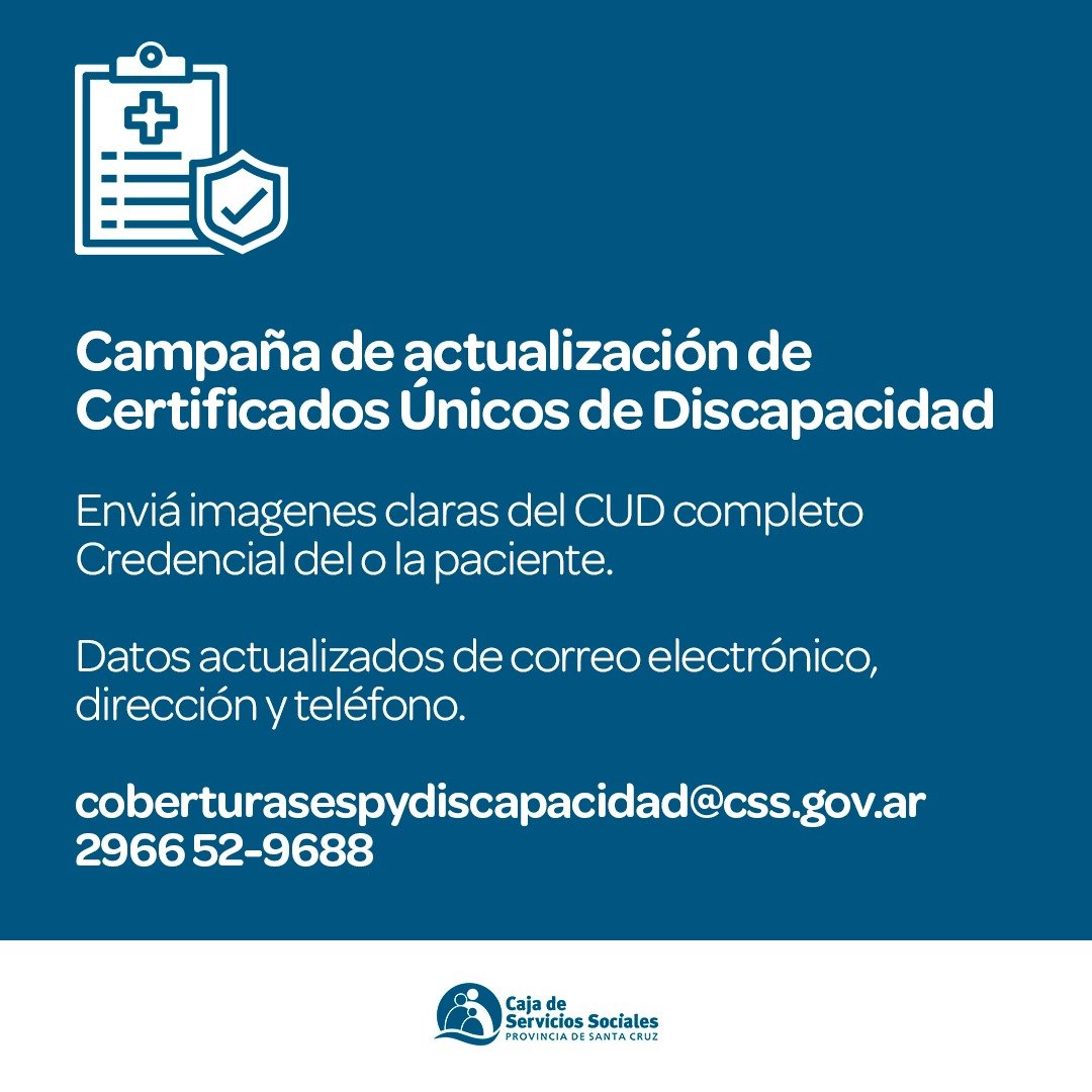 La Caja de Servicios Sociales informa actualizaciones en los CUD