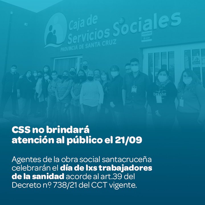 En abril se hizo oficial la homologación que recategoriza a trabajadores de la CSS que, entre otros beneficios, lxs reconoce como trabajadores de la sanidad. Por ello no se brindará atención presencial en ninguna sede de la obra social santacruceña.