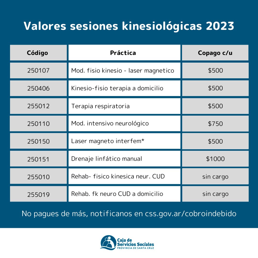 El Gobierno de Santa Cruz, a través de la obra social de les trabajadores del Estado, publicó el valor de los copagos para las diferentes prácticas kinésicas a lo largo y ancho de la provincia a partir de abril del 2023.