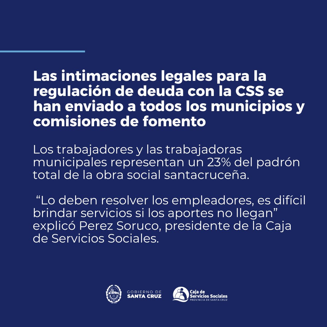 Lo manifestó el presidente de la Caja de Servicios Sociales de Santa Cruz, Sergio Pérez Soruco, en relación a las intimaciones que se enviaron a los Municipios y Comisiones de Fomento de la provincia para la regularización de deuda.