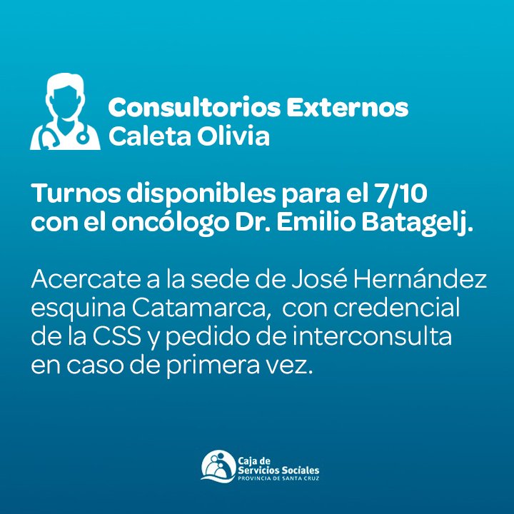 El médico atenderá el viernes 7 de octubre en Caleta Olivia, y el sábado 8 en Las Heras. Para solicitar turno, los afiliados y afiliadas de la Caja deben presentar su credencial y pedido de interconsulta en caso de que consulten por primera vez.