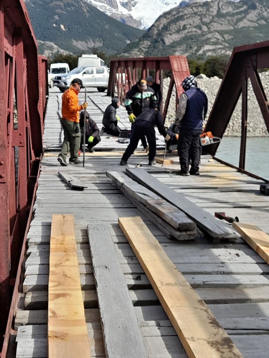 El Consejo Agrario Provincial (CAP), en un trabajo conjunto con el Distrito Vial El Chaltén de la Administración General de Vialidad Provincial, llevó adelante tareas de mantenimiento y reparación en el Puente del Río Eléctrico, ubicado en la Ruta Provincial Nº 41, camino a Lago del Desierto, en la provincia de Santa Cruz.