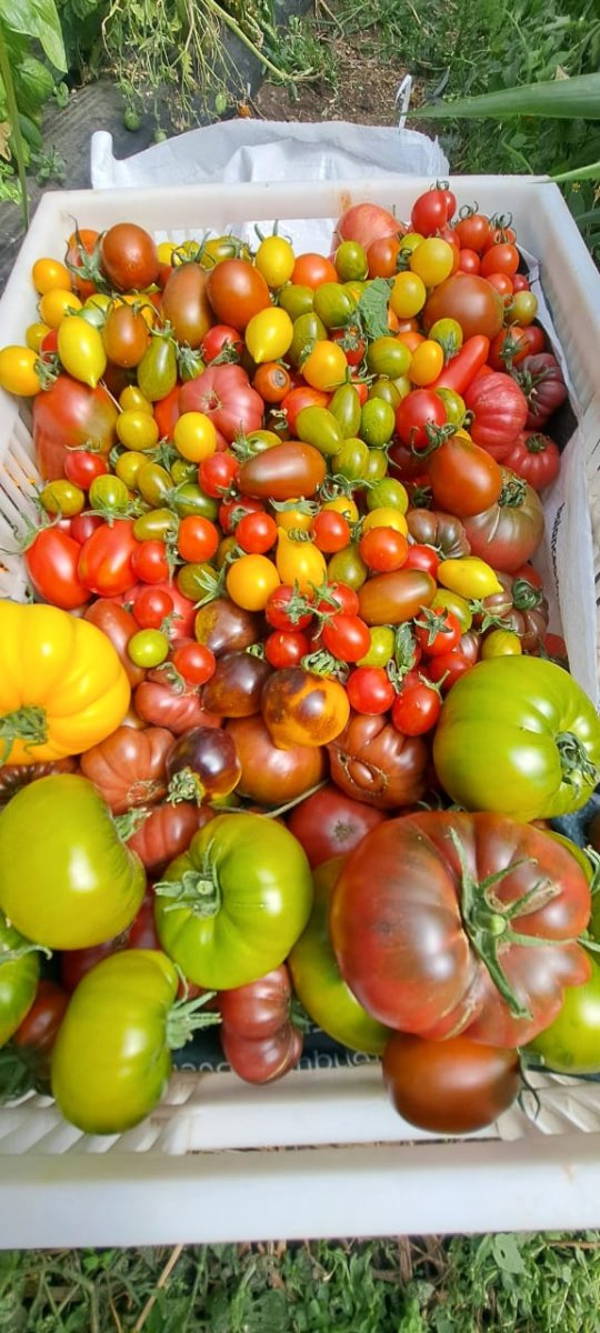 Con el tiempo pudo recuperar una estructura abandonada y ampliar su capacidad productiva. Hoy trabaja con alrededor de 100 variedades de tomates, de las cuales implantó unas 60 este año, además de lechuga, acelga, espinaca y entre 25 y 30 variedades de zapallo. Actualmente cuenta con tres invernaderos productivos y avanza en la construcción de un cuarto con policarbonato.