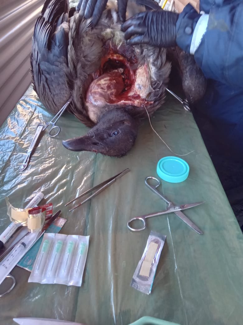 Veterinarios de la Delegación El Calafate del Consejo Agrario Provincial (CAP) realizaron la necropsia de un cóndor andino hembra juvenil que murió por electrocución tras colisionar con un tendido eléctrico de media tensión en cercanías de Río Turbio.