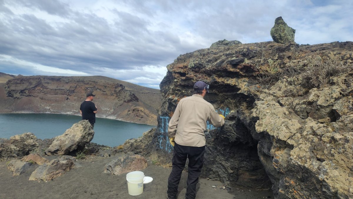 Además, se retiraron grafitis de las piedras volcánicas del cráter, una acción clave para recuperar la imagen original del lugar y preservar un paisaje que forma parte de la identidad santacruceña.
