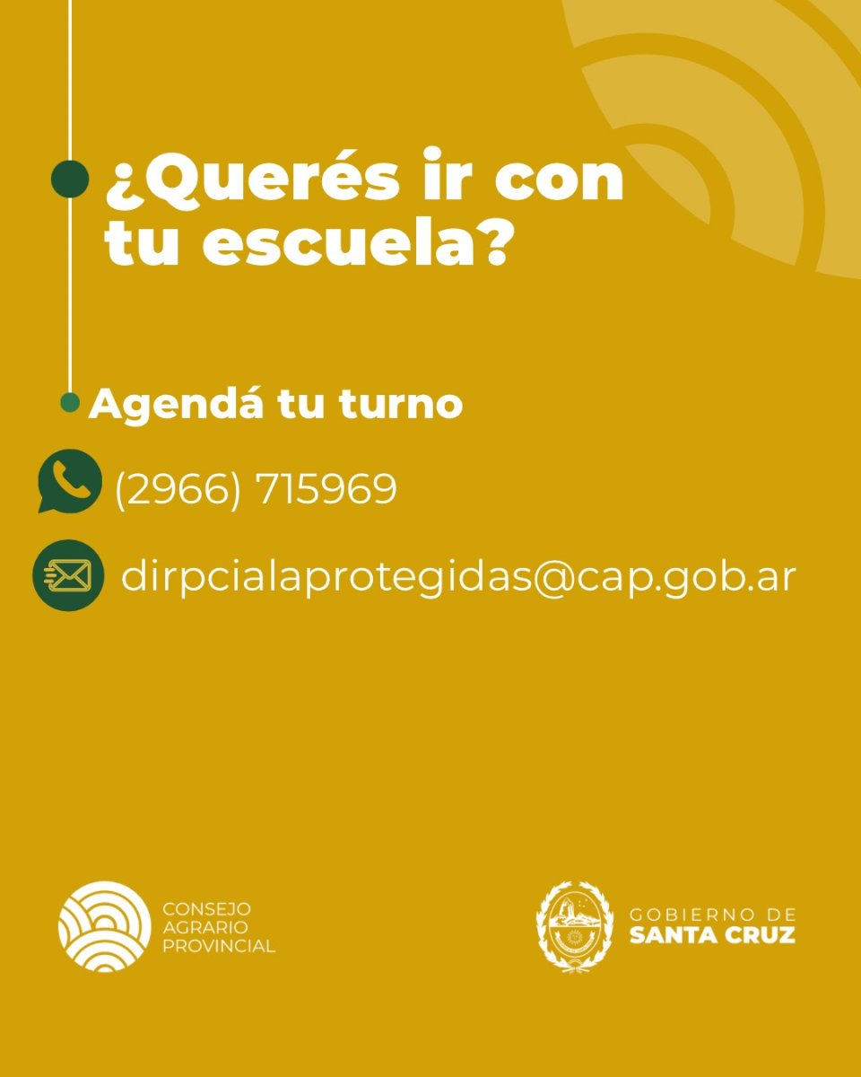 Las instituciones educativas interesadas en realizar visitas guiadas pueden comunicarse al (2966) 715969 o al correo electrónico dir.pcial.aprotegidas@cap.gob.ar.