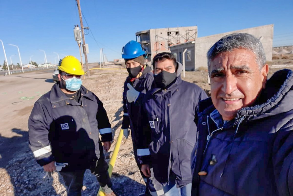 La obra se está realizando de manera conjunta entre personal de las sucursales de Jaramillo y Fitz Roy, Caleta Olivia y Pico Truncado, quiénes están a cargo de la parte técnica y la Comisión de Fomento, aporta la logística para el movimiento de suelos.