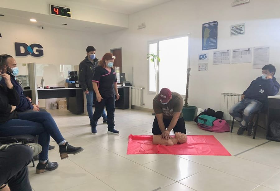 Con el objetivo de dotar de conocimientos y herramientas al personal de la empresa, se llevó a cabo en las instalaciones de la Sucursal Caleta Olivia, una jornada de formación para instruir a los trabajadores y trabajadoras de todas las áreas de la empresa, comercial, técnica y operativa, para saber cómo y cuándo practicar una reanimación cardiopulmonar (RCP) y que pautas básicas de primeros auxilios deben conocer mientras llegan los servicios de emergencias tras un accidente.