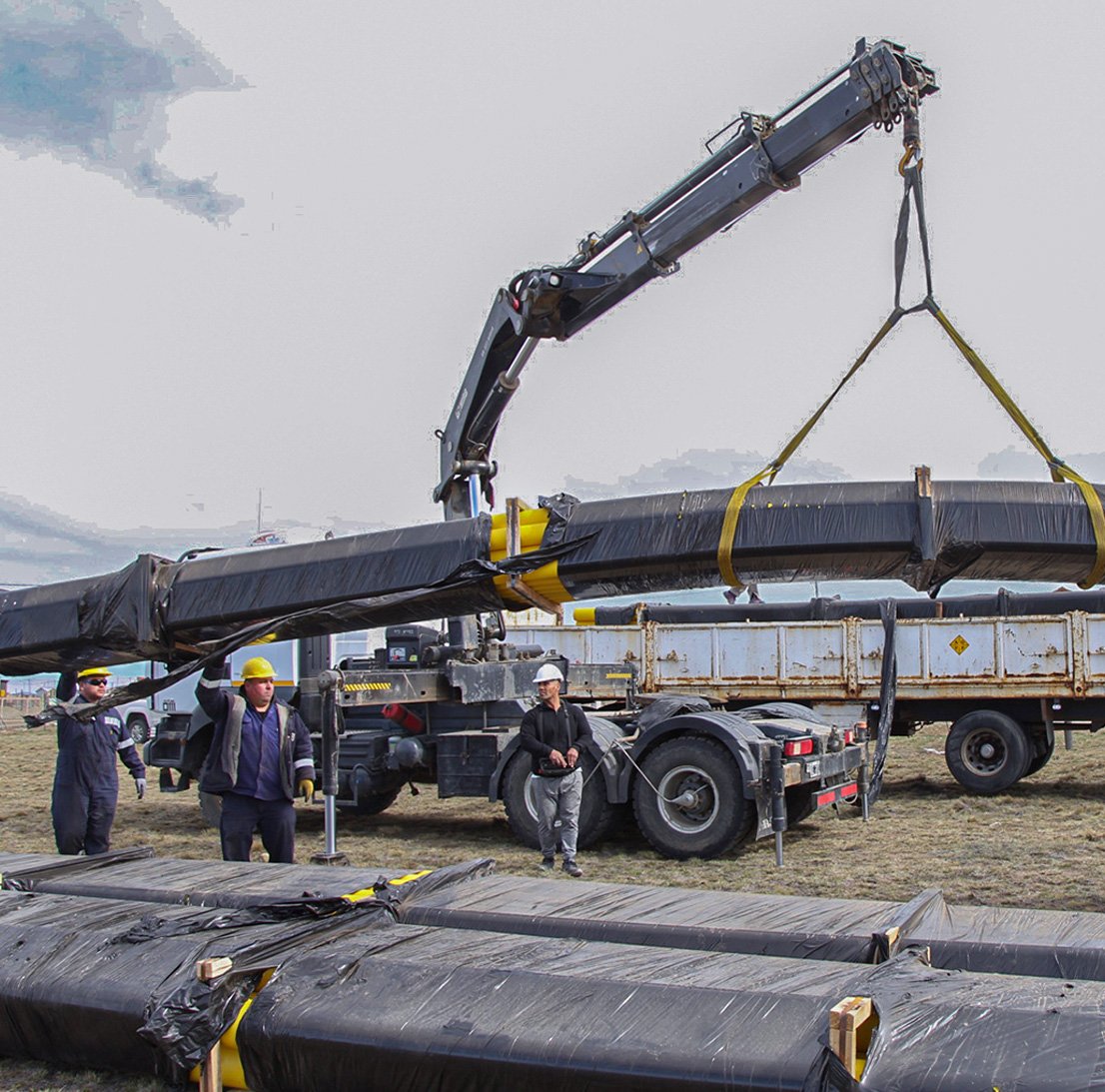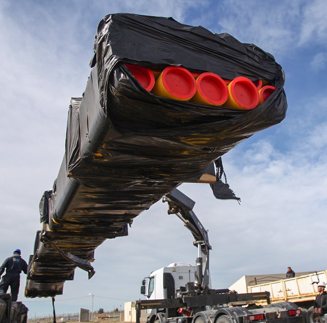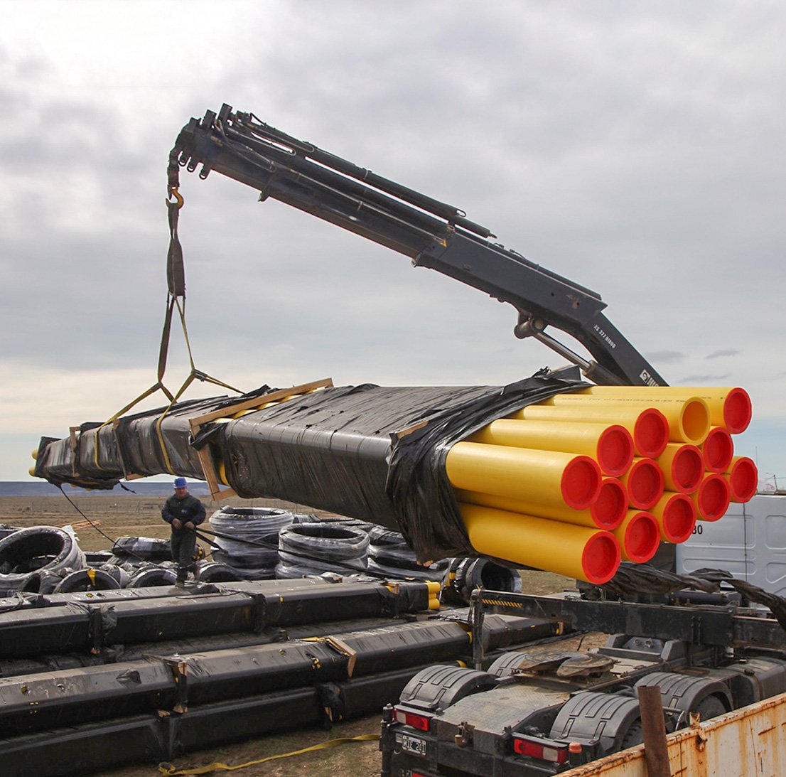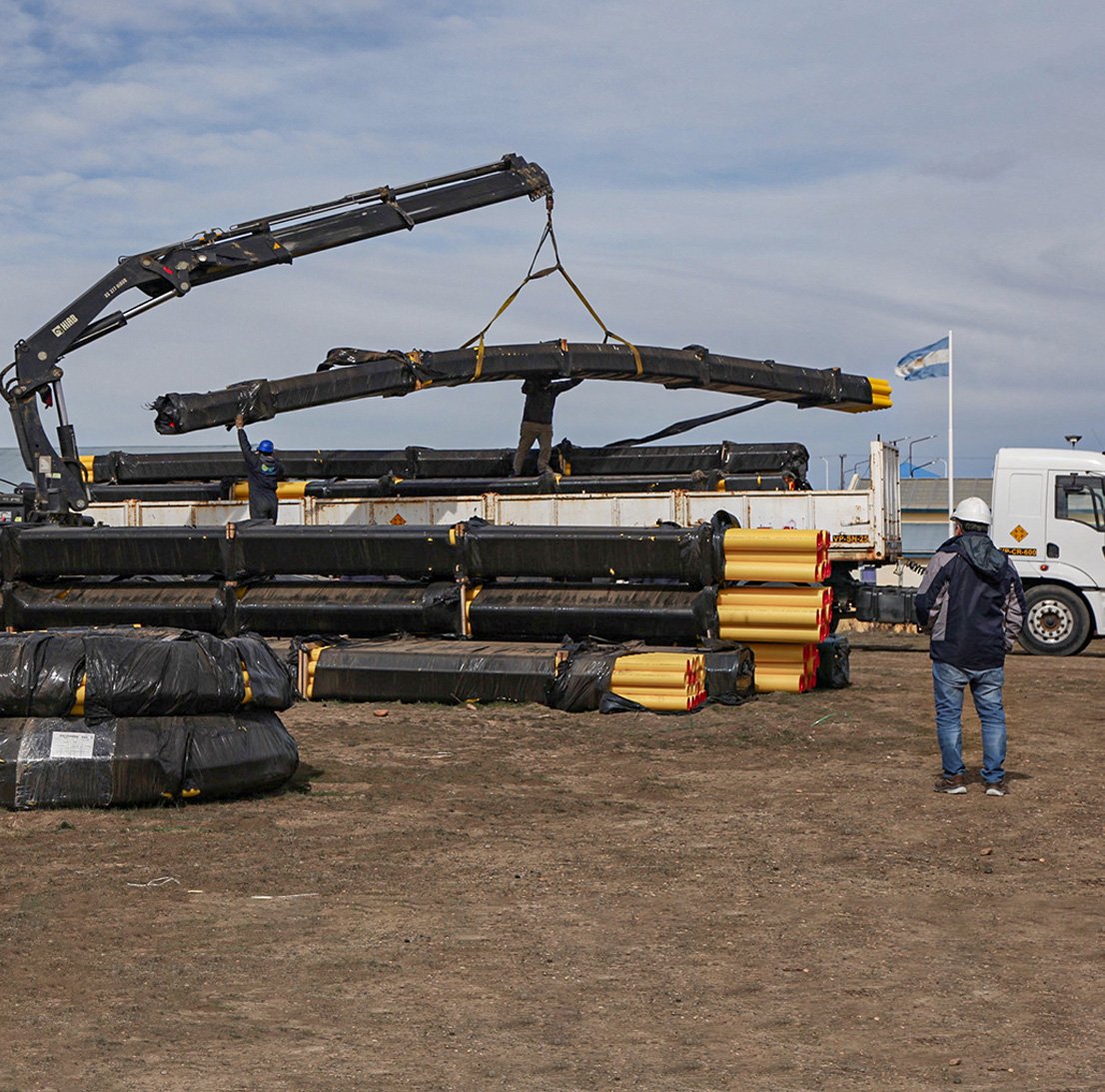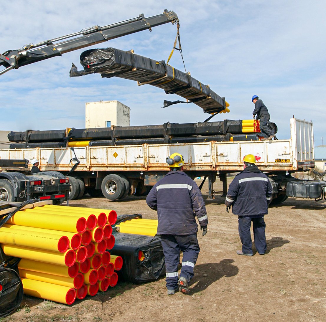 En este caso con la colaboración de Vialidad Provincial para el traslado de cañería, actividad que se irá desarrollando a lo largo de los días dado que se trata de una gran cantidad de materiales.