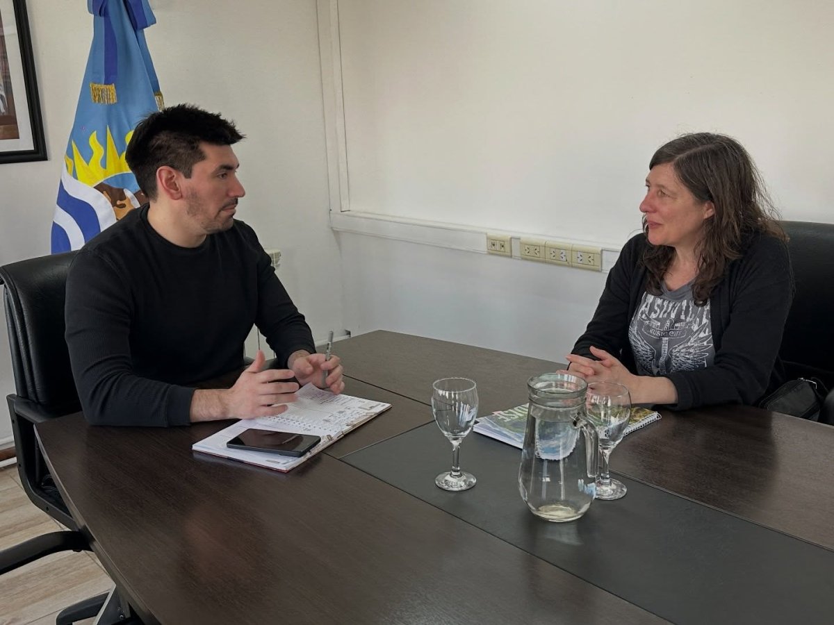 Posteriormente, se concretó un encuentro con la referente del área de Desarrollo Profesional del Consejo Provincial de Educación, profesora Paulina Salemi, con quien se abordaron líneas de acción vinculadas a la capacitación y concientización en ámbitos educativos.