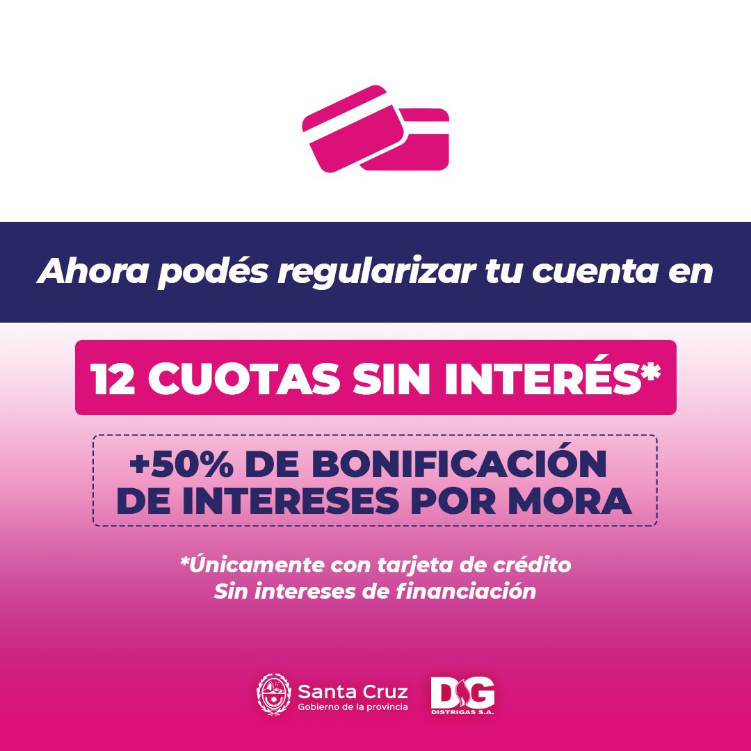 El Gobierno de Santa Cruz, a través de Distrigas, informa la extensión del plan de pagos para usuarixs residenciales con la finalidad de brindar la posibilidad de regularizar las cuentas.