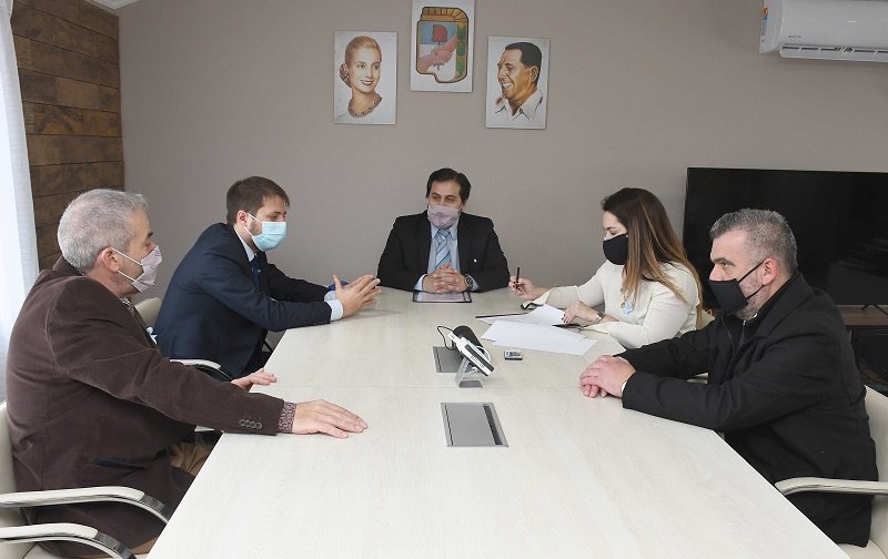 Durante la firma de convenio que se llevó adelante en las instalaciones de la Municipalidad de Puerto Santa Cruz, estuvieron presentes el ministro de Gobierno, Leandro Zuliani y el diputado por el Pueblo, Leonardo Paradis.