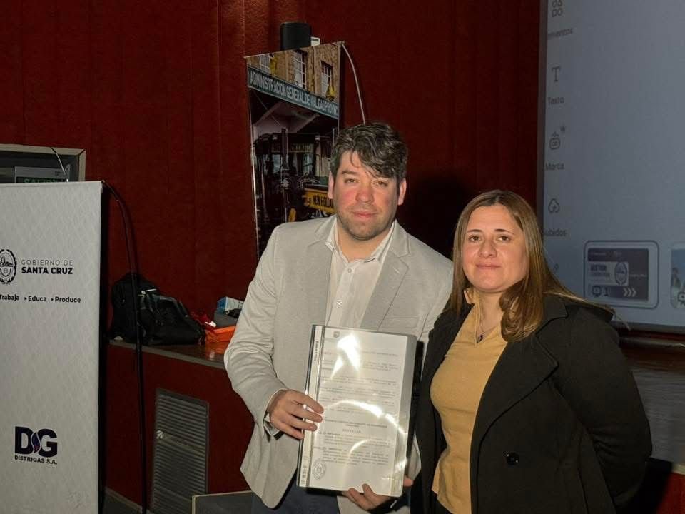 La intendenta Carina Bosso y la presidenta del Honorable Concejo Deliberante, Sra. Adriana Soto, hicieron entrega de la Resolución que otorga este reconocimiento oficial a la propuesta formativa, a Maximiliano Gómez, responsable de la Subgerencia Provincial de Relaciones Institucionales del ente dependiente del Gobierno Provincial.
