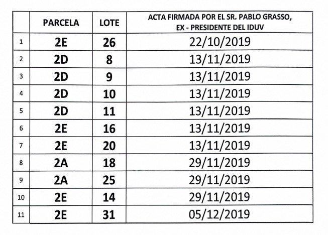 La denuncia, fue formalizada el viernes 29 de noviembre mediante el sistema SIPED, en el Juzgado de Instrucción N°2, y señala que el sistema de entregas implementado por los Grasso, habría vulnerado las leyes vigentes, dejando de lado a quienes, cumpliendo con todos los requisitos legales, como la presentación de expedientes, trámites y años de espera, nunca tuvieron la oportunidad de acceder a un lote con servicios.