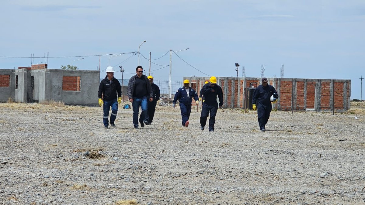 En esta jornada, el presidente del Instituto de Desarrollo Urbano y Vivienda (IDUV), Marcelo De La Torre, el presidente de la Comisión de Fomento de Koluel Kaike, Tomás Cabral e integrantes de su equipo de trabajo, recorrieron la Manzana 23A, predio donde se puso en marcha la obra que permitirá cumplir el sueño de la casa propia de seis familias de la localidad de Koluel Kaike.