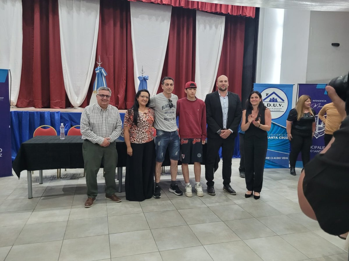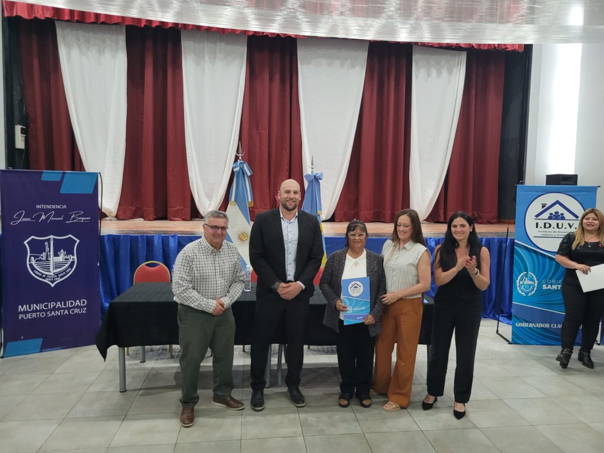 En el marco del 147° Aniversario de Puerto Santa Cruz, este lunes 1° de diciembre, el Gobierno de Santa Cruz a través del Instituto de Desarrollo Urbano y Vivienda (IDUV) realizó la entrega de títulos de propiedad a familias de la localidad.
