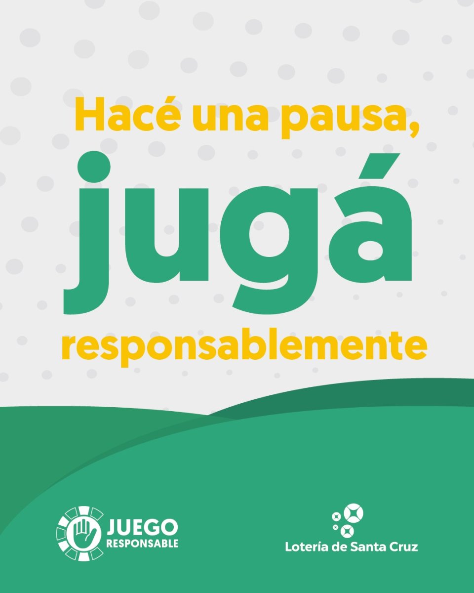 Si necesitas información sobre juego responsable o juego patológico, podes comunicarte de lunes a viernes de 9:00 a 14:00, a través de la nuestra central telefónica de LOAS al 02966-422631, o enviarnos un mail a juegoresponsable@loteriadesantacruz.gob.ar