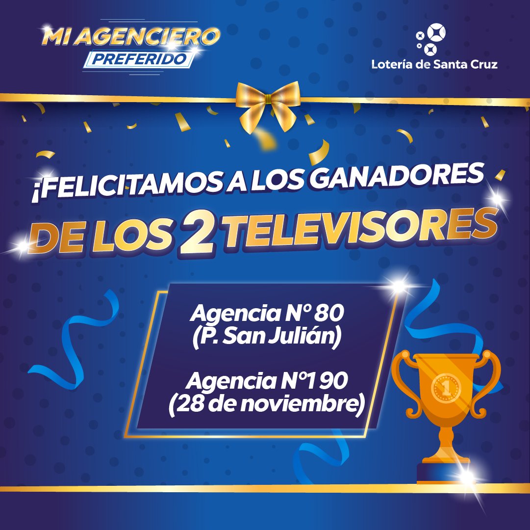 La semana pasada concluyó el concurso Mi Agenciero Preferido 2022 que busca reconocer el trabajo de agencieros y agencieras de toda la provincia. La agencia 80 de San Julián (84 votos) la agencia 190 de 28 de noviembre (65 votos), fueron las más apoyadas por los seguidores de la página de Facebook de Lotería de Santa Cruz y como reconocimiento recibieron un televisor de 55 pulgadas cada una.