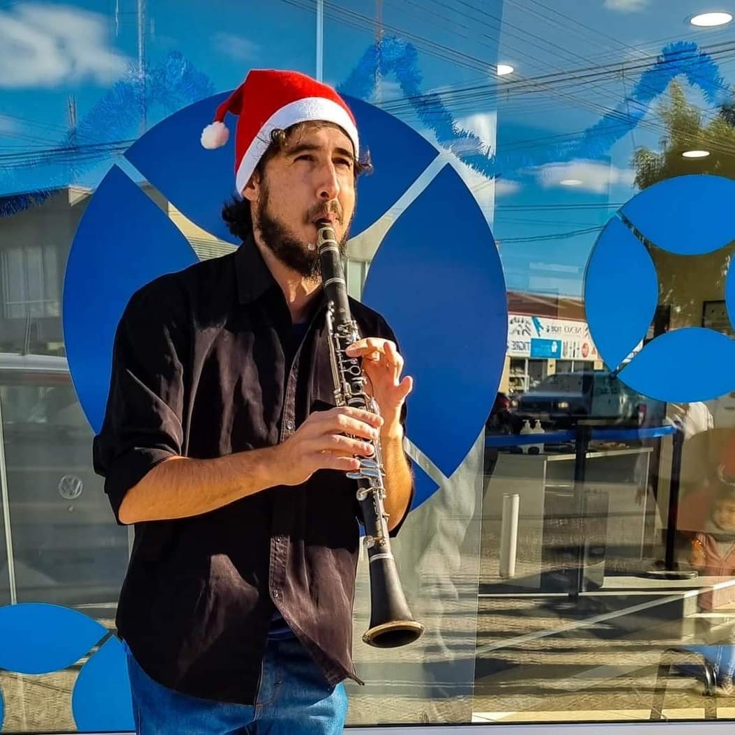 Más tarde, cerca de las 19:00, un músico ofreció un show de swing en la vereda del edificio al tiempo que familias enteras hicieron largas filas para conocer a Papá Noel.