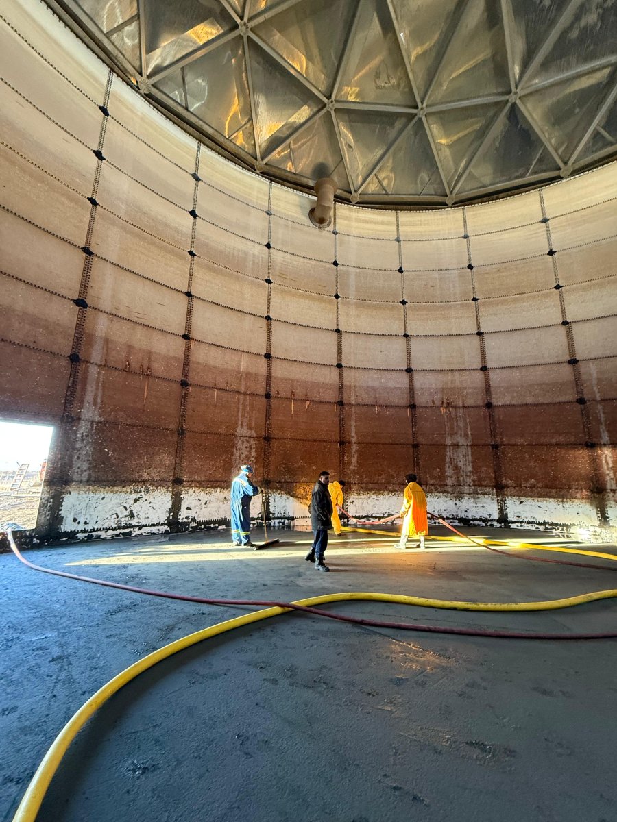 Este tanque, con una capacidad de 5.000 metros cúbicos, cumple un rol fundamental como reservorio de agua salada antes de ser tratada por ósmosis inversa. La acumulación de arena y piedras —que alcanzaba un nivel de 3,5 metros— exigió una intervención urgente, coordinada y técnicamente compleja.
